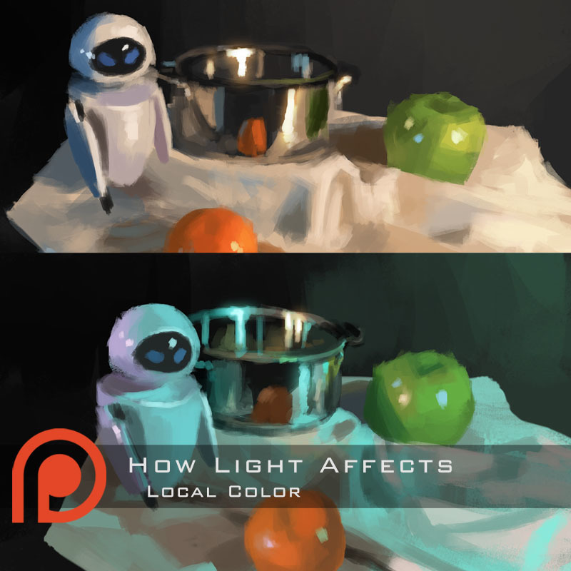 This March 2017 Patreon reward covers an introduction on how different colored lights affect the local color of an object. For the demonstration I'll be painting two still lives, one with no filter and one with a blue filter. Some of the topics I cover include